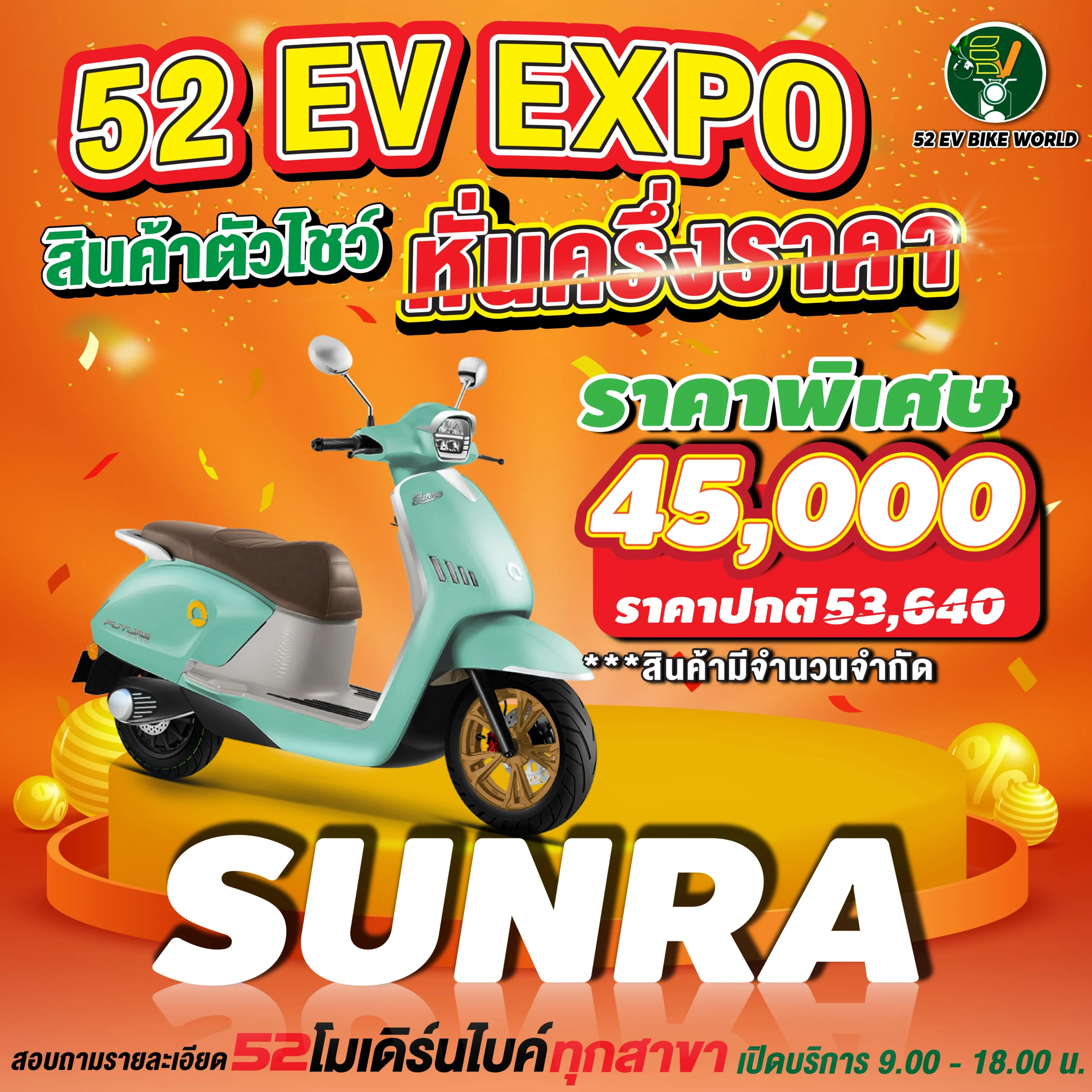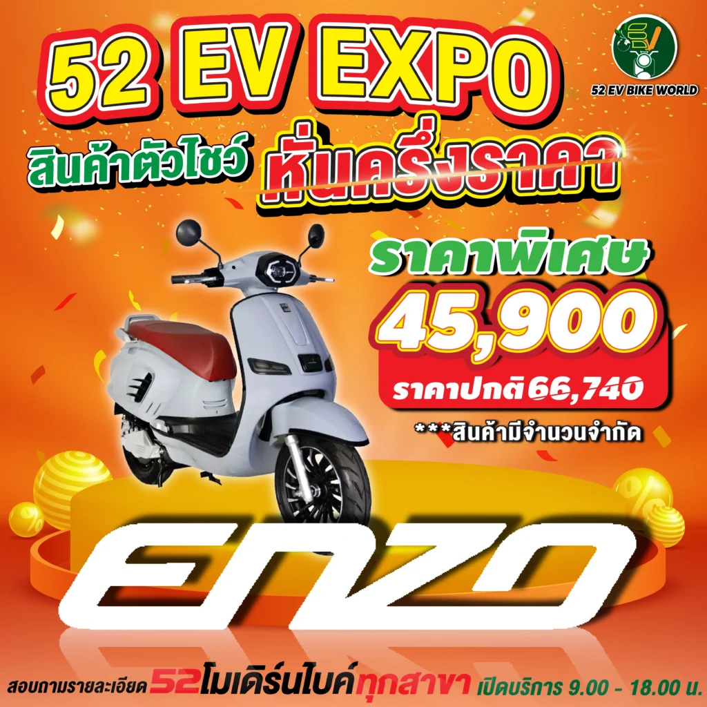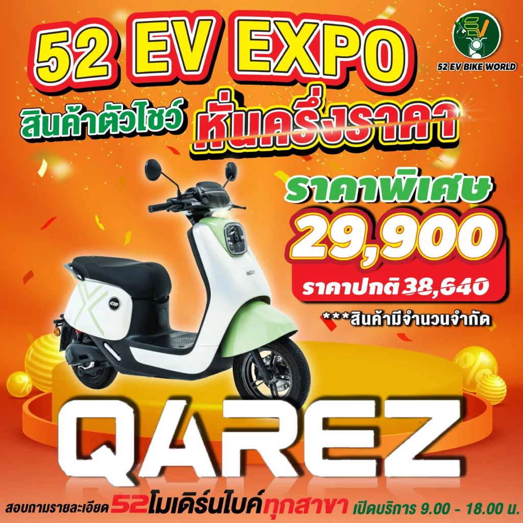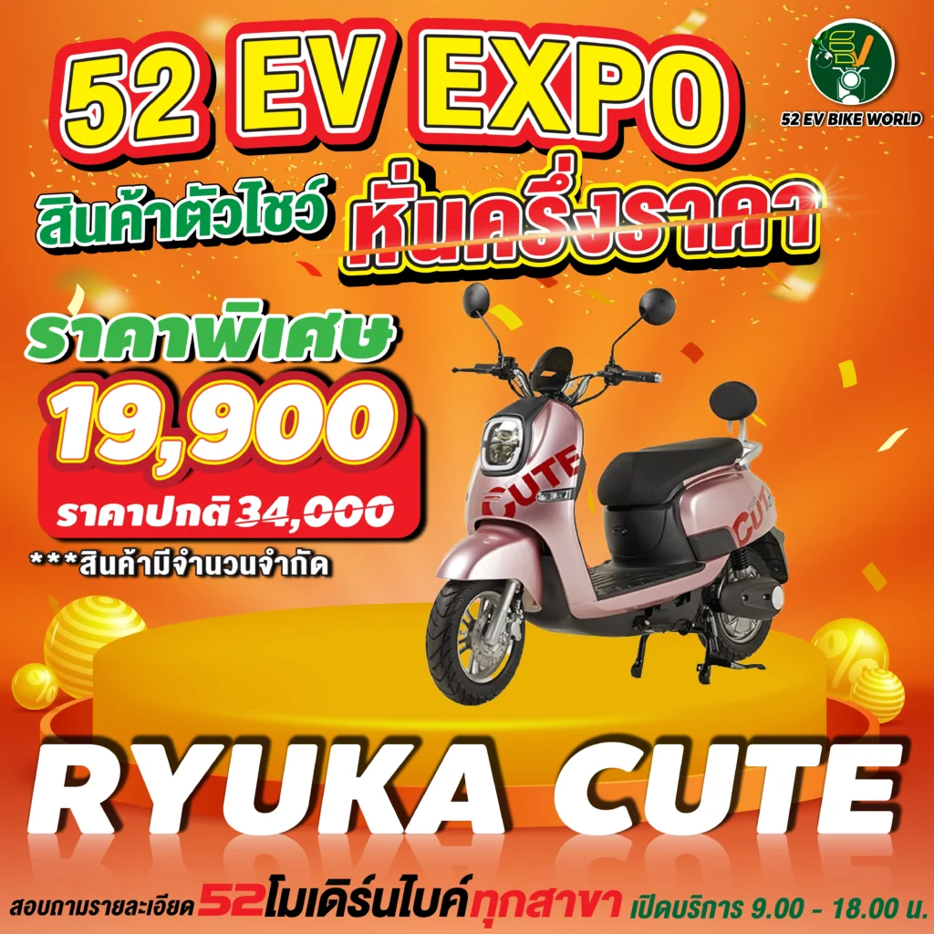 สินค้าตัวโชว์รถมอเตอร์ไซค์ไฟฟ้า หั่นครึ่งราคา สอบถามรายละเอียดได้ที่ 52 โมเดิร์นไบค์ทุกสาขา เปิดให้บริการ 09.00-18.00 น.